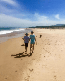 ll head and body coverings. There is no lounging around on the sand in a bikini looking sultry. There are no romantic ‘From here to eternity’ moments in the crashing waves with our special someone. There is serious packing that is required beforehand which resembles a normal person’s holiday checklist. I take a wide brimmed hat large enough to shelter Wagga, a rash shirt, board shorts, sarong, sunglasses and sunscreen…oh the sunscreen. The amount of preparation and packing makes a quick beach trip almost not worth doing. The only other option I have is to go at dusk…shark feeding time… Great.